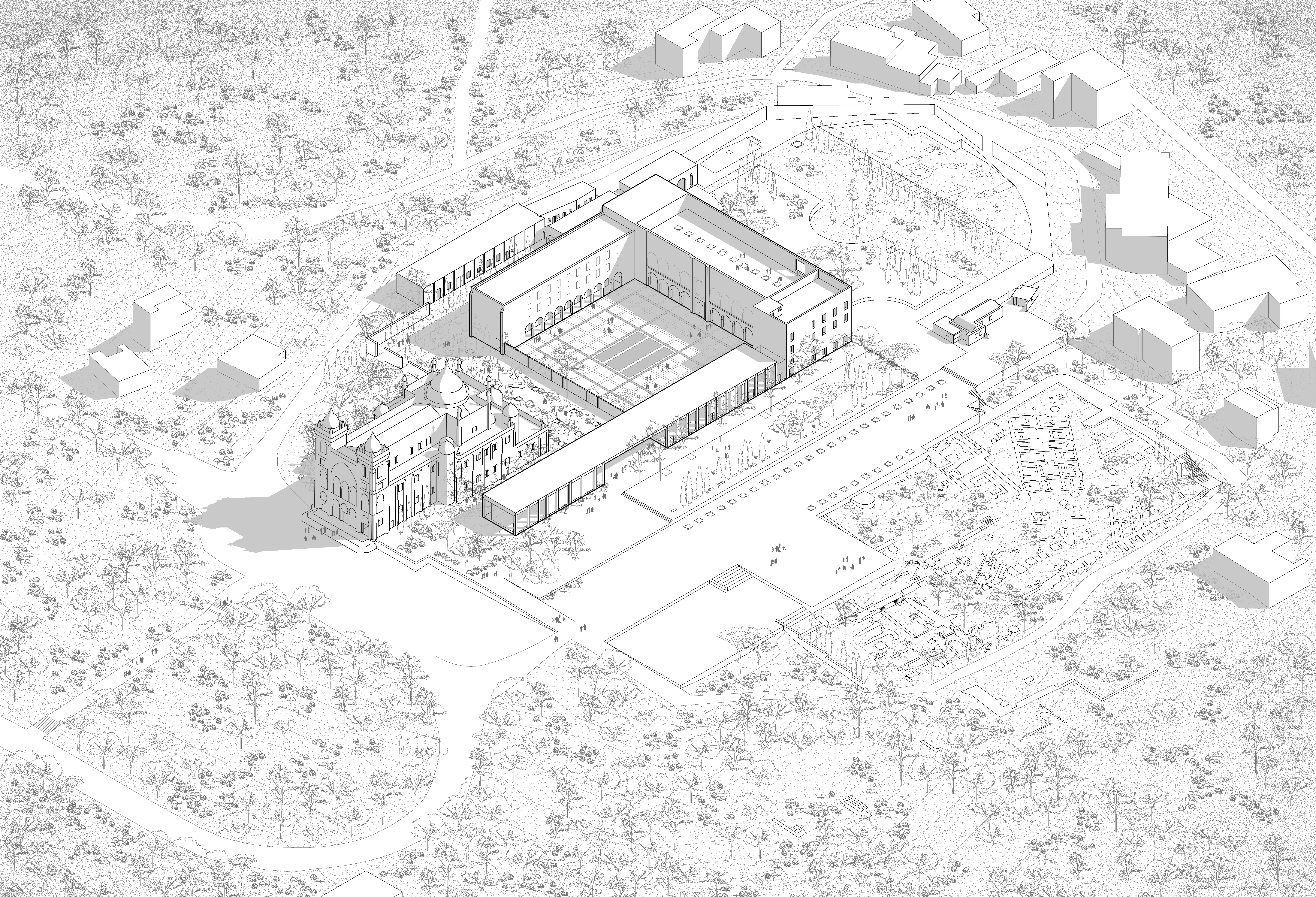 The Byrsa Hill was inhabited by various civilisations across millennia, bearing witness to the region’s rich diversity and pluralism. The site is interpreted as a palimpsest - a layered collection of earlier forms, artefacts, traces and narratives of cultures that evolved here over time. Our design approach proposes an extension as the latest ‘layer’ of the palimpsest. We propose to optimally build on the footprints of the ad-hoc additions in the last two decades that undermine the universal value of the iconic site.