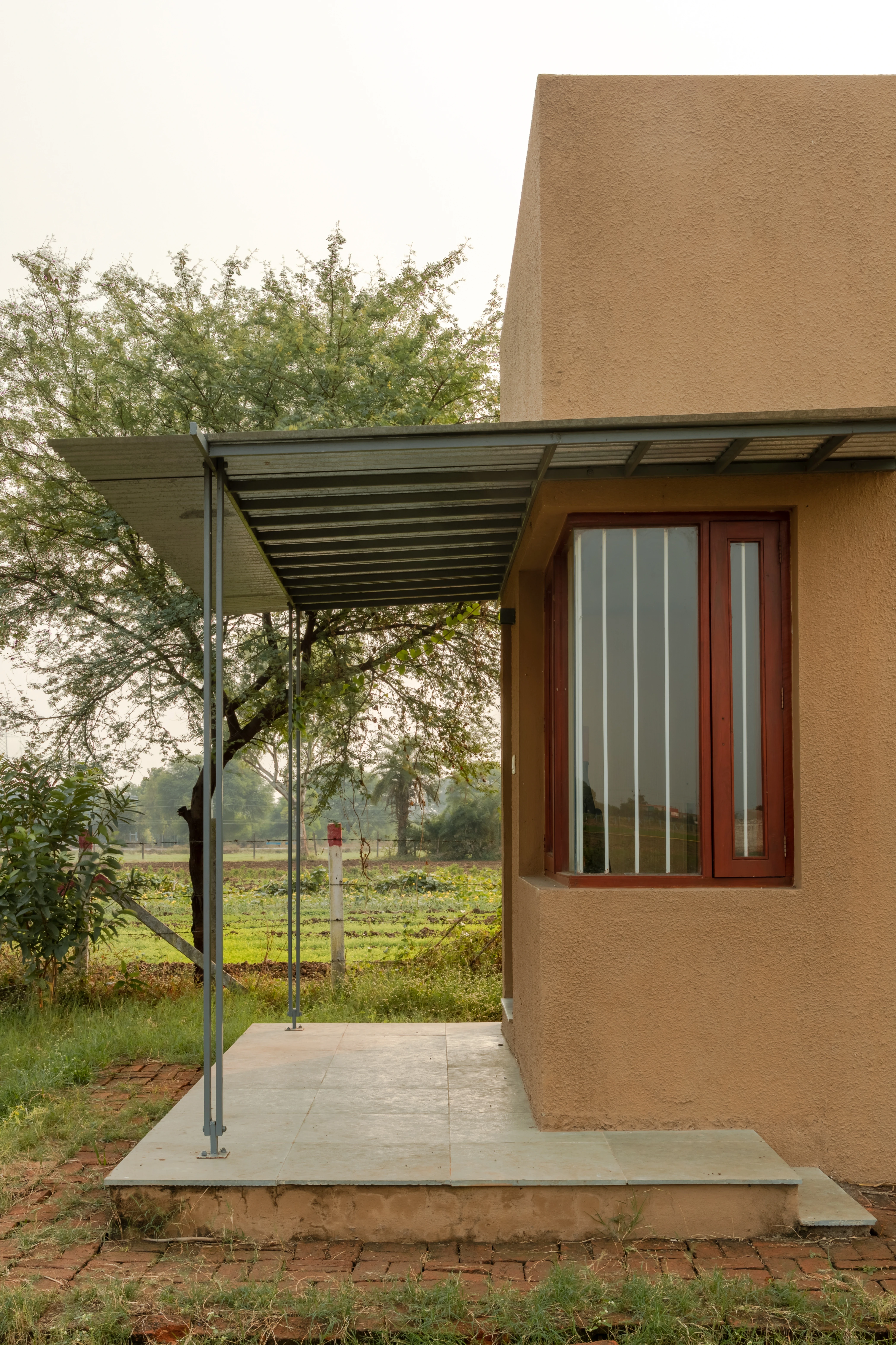 Designed as a prototype for an affordable house in Indore India, this tiny house comfortably accommodates a family of four. It occupies a minimal footprint of 19.5 square metres with a spill-out space of 6 square metres. Despite its compact footprint, the interior feels spacious, featuring a versatile single volume that adapts to various daily needs. The house features an RCC-frame structure with in-situ cast isolated footing foundations and brick infill walls, making it easy to replicate using locally available skills and construction techniques.